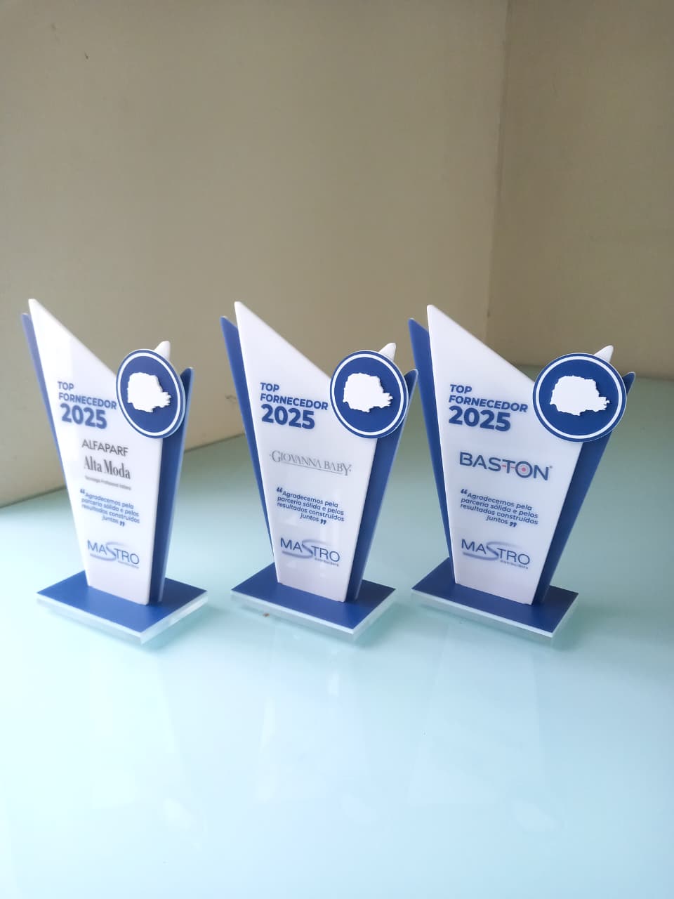A gravação a laser no acrílico oferece detalhes precisos e elegantes, permitindo a aplicação de logotipos, nomes, datas e mensagens especiais com excelente definição. O resultado é um troféu leve, resistente e com aparência profissional.
